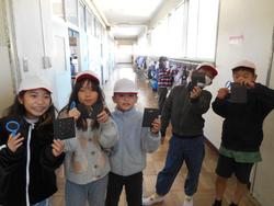 3年生は、先日、別のクラスで「光のせいしつ」の学習の始まりを紹介しましたが、今日は日差したっぷりなので外に出て実験をしていました。黒画用紙に虫めがねで光を集めてみると…穴が開きました!それを連続して行っていくと穴が線状につながり、1枚の黒画用紙も二つに分かれていて、驚きです。教室に帰ってノートに実験の結果をまとめます。