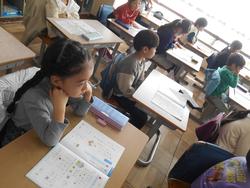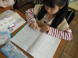 2年生は、「年がじょうと 書きぞめ」の学習です。年末・年始に向けて行うこの季節ならではの学習です。別のクラスでは、算数「かけ算」で「九九にはどのようなきまりがあるか」を考えています。習ったことを使って自分の考えをノートにたくさんきまりが書けていて、さすが小金っ子です。