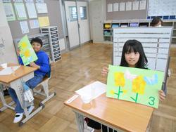 一方、4年生は総合的な学習の時間で「地いきに えがお を さかせよう」をテーマに、今までの活動を振り返り、実行してきたことをどのようにまとめていくかを考え、話し合っていました。子供たちの話し合いの中からいくつも活動のアイデアが出てきたもののうちの一つ「水やり当番表をつくろう」については、早速、今日から取組開始です。