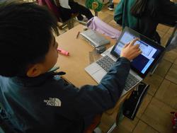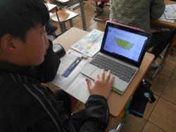 タブレットを使って図形を切り取り移動させて考える子、ノートに図形を貼ってそこに書き込む子、様々です。両方で考えている子もいました。自分に合った考えやすい方法で取り組むように授業を行っています。