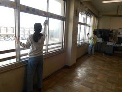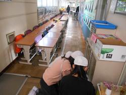 今日から短縮日課で3時間。3時間目は全校で大掃除です。日頃の掃除時間で手が回らないところや1年使った校舎を時間をかけて掃除をします。教室は机やいすを全て廊下に出してワックスがけもしました。