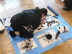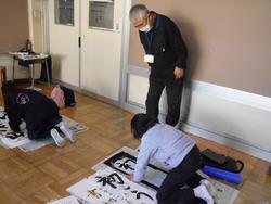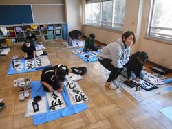 昨年12月16日に第1回目の練習を行った書初め代表児童の練習。今日は第2回目の練習を全校児童下校後に行いました。本日も前回同様、山本先生にご指導をいただきながら練習をしています。