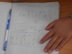 今まで習ってきた「たし算」だと「3+4」でよかったのですが、今日は基準となる「〇〇さん」が問題文の数値には含まれていません。問題の中に数値が表されていなくとも、重なりが合ったり、基準となる人や物を「1」として加えるなど、文章から場面の状況を読み取って立式・計算をするところが難しいところです。