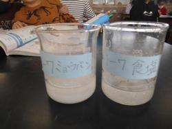 5年生は今日は理科室で「ものの溶け方」の実験をしていました。前回の授業では、食塩とミョウバンを水に溶かすと、溶ける量には限界があるか、予想を立てて調べたところです。温めれば溶かすことができるのではないかということで実験をしましたが、次の実験は「溶けたものを取り出すことができるかどうか」を考え、確かめる実験方法を考えていきます。