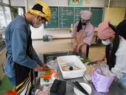 6年生は家庭科で「一食分の献立」を考え、調理実習をする学習に入っています。先日は6年1組の実習の様子をお伝えしましたが、今日は6年2組が1、2時間目に行っています。小学校での最後の調理実習、各自献立を考えて今日の実習を迎えています。