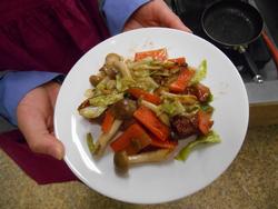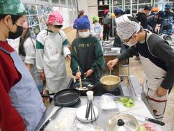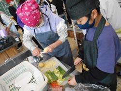複数のものを調理しつつ、洗い物も行いつつで調理を進めている中、子供たちの声にあったのは、「料理って大変だな」という言葉。日頃のお家の方々にしていただいていることに改めて気付かされ、感謝の気持ちが伺えました。色味を考え、とろみもつけたおいしそうな炒め物が出来上がってきたので見せてもらいました。