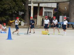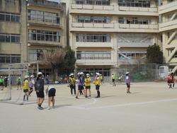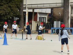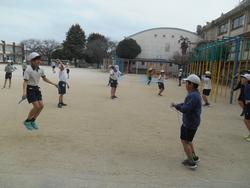 5年生と3年生は体育。短縄跳びをした後は5年生はサッカー、3年生はティーボールを元気いっぱいにしていました。