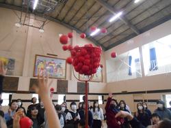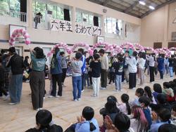 さて、今日は6年生の子供たちが卒業するのを、6年生と6年生と保護者とで祝う「卒業を祝う会」です。そこに、私もお招きいただき参加してきました。6学年PTA役員さんの準備と進行のもと、子供たちと保護者の皆様とのレクリエーションとして「クラス対抗玉入れ」が行われました。