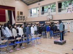 まるで冬のような寒さで雨も降り始めた午前中。6年生は2、3校時で卒業式練習を行いました。私が体育館に様子を見に行ったときには歌の練習。6年生の子供たちの歌声の素晴らしさ、美しさは今までの各行事でも感動することしきりでした。最後の旅立ちに向けて練習を積み重ねているところです。