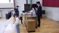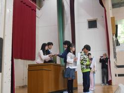 その後は修了式を行いました。それぞれの学年から選出された代表児童に1年間の修了書を渡しました。