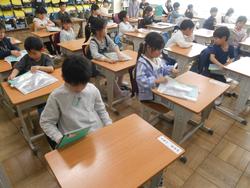 小金小校歌も、「1年生になったら」もしっかり歌えて授業も終わり。持ち物の片付けをして帰りの支度です。道具をしまうのも頑張って行っていました。さすが1年生!