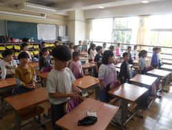 この下敷きは、毎年PTAさんからいただいてきました。「おにいちゃんも持ってるよ!」と教えてくれた1年生もいます。校歌が印字されている下敷きがあると、歌う時にもとても助かります。おかげで大きな声でしっかりと歌う姿が見られました。