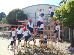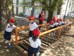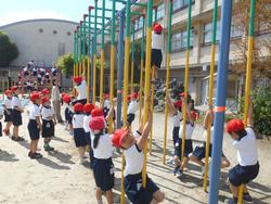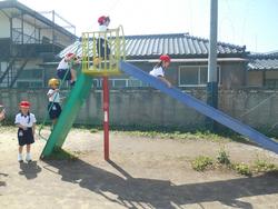 今日の1年生は、国語、生活、算数の学習です。生活科は「校庭めぐり」です。小金小には、かつて小金小附属幼稚園がありましたので、他校よりも低学年向けの遊具がたくさんあります。遊具の使い方や約束を先生たちから教わり、実際に使って活動しました。