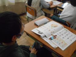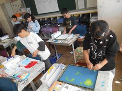 昨日のホームページで5年生の交換授業の様子をお知らせしましたが、6年生も交換授業を行っていました。画像は6年1組と2組。図工と英語を交換しています。