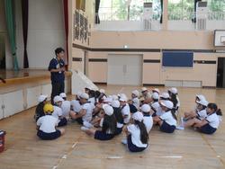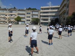 実は、これはゲームでもありますが、集団行動の学習の一つです。どれだけ集合を機敏にできるか、しゃべらずに集合できるかですが、ものすごくルールがきちんと守られており、集合も速く、先生の話もしっかりと聞くことが出来ていました。3年生、素晴らしいですね!