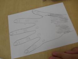 細かなしわや影になるところ、関節や爪など、鉛筆で描いたところを擦ってぼかしたりする方法も取り入れていきます。