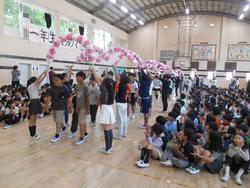 楽しい時間はあっという間。アーチ係の子供たちが退場の準備をして1年生の退場です。今回、初めて新年度児童会役員全員がそろって「1年生を迎える会」を企画・進行してくれましたが、楽しくて時間も予定より少し早めに終えられたのも素晴らしかったです。小金小皆が力を合わせて1年生を迎えることができました。とても温かでよい会でした。