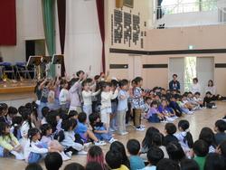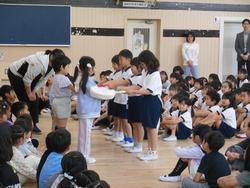 ゲームで大盛り上がりとなった後には、2年生から1年生へプレゼント。2年生もおにいさん・おねえさんになりました。去年はプレゼントをもらっていた側でしたが、今年は自分たちが育ててきたアサガオの種をきれいに包装して1年生へプレゼントです。
