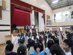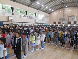 最後に、全校で小金小校歌を歌いました。歌声委員会の素晴らしい指揮・伴奏のもと、全校での合唱です。1年生も入学してから今まで、毎日校歌の練習をしてきているので、上級生に負けない大きな声で歌えていました。小金っ子全員が元気な歌声で校歌を歌っている姿をとても嬉しく思いました。