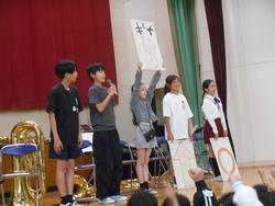 1年生の姿に扮した児童会役員の「始めの言葉」でいよいよ会のスタート。
