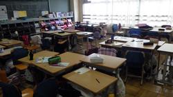 一方、下の画像は6年生。グループ活動をしていても、すぐに活動をやめ、机の下にもぐります。さすが6年生。