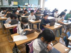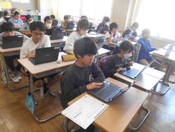 避難訓練を3校時に行いましたが、午後は6年生が全国学力学習状況調査の質問紙を行いました。小学校の質問紙については、今年度から文科省が進める一人一台端末を使ったCBTシステム(MEXCBT:メクビット)でタブレットを使って行っています。タブレットの扱いについては6年生も手慣れたものです。落ち着いて調査に答えていました。