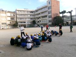 ミニバスケットボール部は、体育館が使えないので幼稚園舎とグラウンドに分かれて練習を行いました。