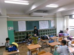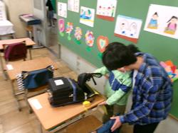 ランドセルの中身を机の中に入れたり、持ってきた引き出した道具などをセットしたり、