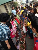 3年生が地域の方と植えたベコニアのプランターを高齢者福祉施設と保育園に地域の方が届けてくださいました。