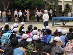 エプロン姿で記念撮影の後、真剣に説明に耳を傾けていました。