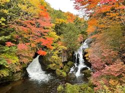 紅葉がきれいになり始めた竜頭の滝、子どもたちは朝の爽やかな空気の中、楽しんだようです。うらやましい。