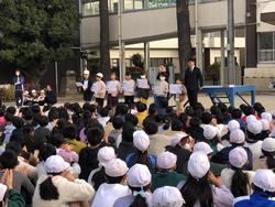 少し寒い中でしたが、青空の下12月の全校朝会を行いました。
