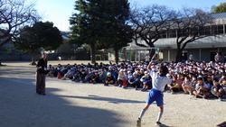 2月1日(木)青空のもと校庭で全校朝会を行いました。
