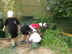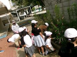 草をとりつつ、虫の幼虫を探しつつ、花壇の整備を和気あいあいと行っていました。