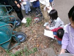 校庭で枯れ葉を見つけたり、校舎裏の方でどんぐりを見つけたりしながらたくさんの秋を見つけていました。