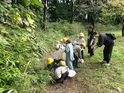 10月27日(月)、1年生が根木内歴史公園へどんぐり拾いに行きました。