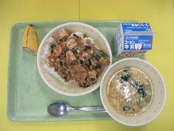 マーボー丼、スーミータン、バナナ、牛乳