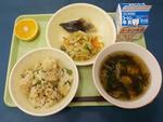 とりのごぼう飯 ホッケの塩焼き ツナサラダ もずくと豆腐のスープ みかん 牛乳