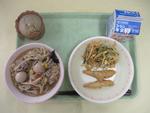 ごはん のりふりかけ さけとチーズのはるまき からしあえ とんじる せとか 牛乳 |