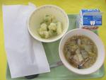 | 5日 | 木 | きつねうどん わかさぎフリッター わかめおにぎり ひとくちりんごゼリー 牛乳 |