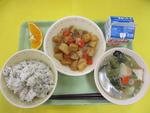 | 20日 | 金 | えだまめごはん おさつあげ なめたけあえ こんさいのごまみそしる 牛乳 |