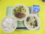 | 18日 | 水 | ごはん さばのかんろに もやしとコーンのあえもの むらくもじる はるか 牛乳 |