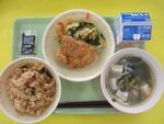 | 5日 | 木 | きつねうどん わかさぎフリッター わかめおにぎり ひとくちりんごゼリー 牛乳 |