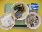 | 18日 | 水 | ごはん さばのかんろに もやしとコーンのあえもの むらくもじる はるか 牛乳 |