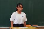 浦和レッズレディースジュニアユースで活動している1年生が校長室を訪れ、8月4日~12日のドイツ遠征の報告をしてくれました。サッカーは幼稚園から始め、小学生の頃は、別のクラブチームで活動していたそうですが、そこには女子のユースがなかったため、中学校進学のタイミングで現在の浦和レッズに移籍したそうです。ドイツ遠征では、同じ年代にも関わらず体格が全く違う相手と戦ったことで、今後自分のやるべきことがわかった、と力強く話してくれました。今後の活躍が楽しみです。