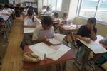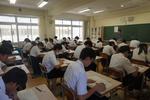 6時間目、残暑を軽く超え酷暑の校庭から、楽しそうな声が聞こえてきたので行ってみると、3年生がアルバム写真を撮影していました。校舎の上の方から、全員集合した3年生をカメラに収めているところでした。当たり前のことですが、この一瞬の時も思い出にかわっていくのですね。ずっと後で「あの夏は暑かったな」と中3の夏を思い出すのでしょうね。同じ6時間目、1・2年生は、第二回定期テストに向けて学習計画をしていました。「前回の反省を生かして、今回こそは頑張ります」と力強い宣言をいただきました。