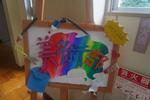 廊下の素敵なウェルカムボードに誘われて、誰もいない美術室におじゃましました。教室内に配置された大きめのテーブル中央には、カラフルな絵の具たちが、まるで使ってくれるのを待っているかのように置かれ、創作意欲を掻き立てられます。今日の美術は教室で行われていて、1年生がタブレットに写した自分の手をデッサンしていました。手のしわや陰影まで鉛筆一本で表現するのはかなり大変だと思いますが、みんなとっても上手にできあがってきています。