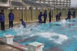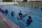 今週、全校生徒が保健体育の授業で着衣泳を体験します。この学習の目的は、水難事故から自分の身を守ることです。今年の夏も、全国各地で悲しい水の事故が報道され、もしもの時どのように自分の身を守るかを知ることはとても重要です。上下のジャージを着て、靴も履いた状態で水の中に入った生徒たちは…、口々に「全然泳げません」「泳ごうとすればするほど、沈みます」「服が邪魔すぎです。身体が重い・・」。その後、先生から背浮きを教えてもらっていました。これも簡単ではなく、冷静になって水に体を預けるようにしないと、ぷかっと浮きません。体験の大切さを身に染みて感じたことと思います。
