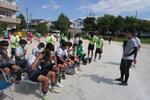 1学期には、8組vs1年生(各クラス)で交流ドッヂビー大会が開かれ、8組の圧勝で幕を閉じましたが、2学期は、さらに交流を深めよう!と、全校トーナメントを交流委員会が企画してくれました。前回勝者の8組メンバーは、交流クラスで出場します。試合は、今日から10月中旬までの長丁場で行われ、優勝クラスには、トロフィーも用意されているそうです。さてキックオフの一回戦は、3年7組vs2年2組、2年5組vs1年7組の対戦でした。両方とも上級生vs下級生の試合でしたが、双方譲らず同点となり、最後は代表によるじゃんけんで勝負を決めることに・・・。結果は、上級生の勝利となりました。短い時間でしたが、大盛り上がりで楽しい交流のひと時となりました。
