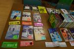 図書館支援員の三好さんは、図書室の整備はもちろん、小金中生が本にもっと興味をもてるようにと、思わず図書室に行きたくなるような掲示物を作り、校内のあちらこちらに掲示してくださっています。第3校舎に渡る廊下には、秋にちなんだ掲示物も貼ってくださり、「秋の七草クイズ」なるものも出題されています。みなさん、クイズに答えて図書室にGo!です。